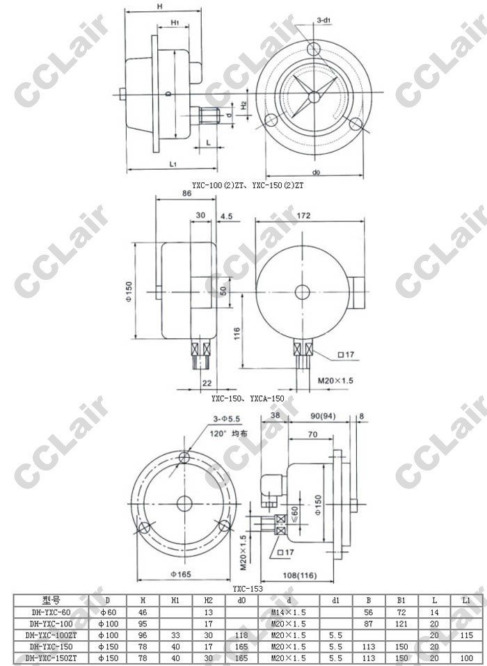 DH-YXC-60,DH-YXC-100,DH-YXC-100ZT,DH-YXC-150,DH-YXC-150ZT,電接點壓力表
