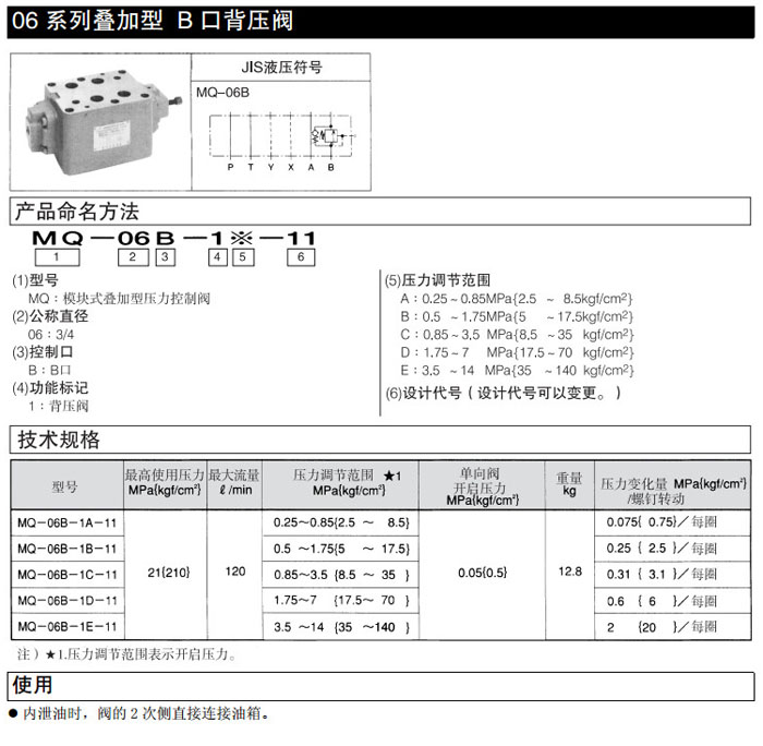 詳細信息 MQ-06B-1A-11,MQ-06B-1B-11,MQ-06B-1C-11,MQ-06B-1D-11,MQ-06B-1E-11,DAIKIN疊加型背壓閥