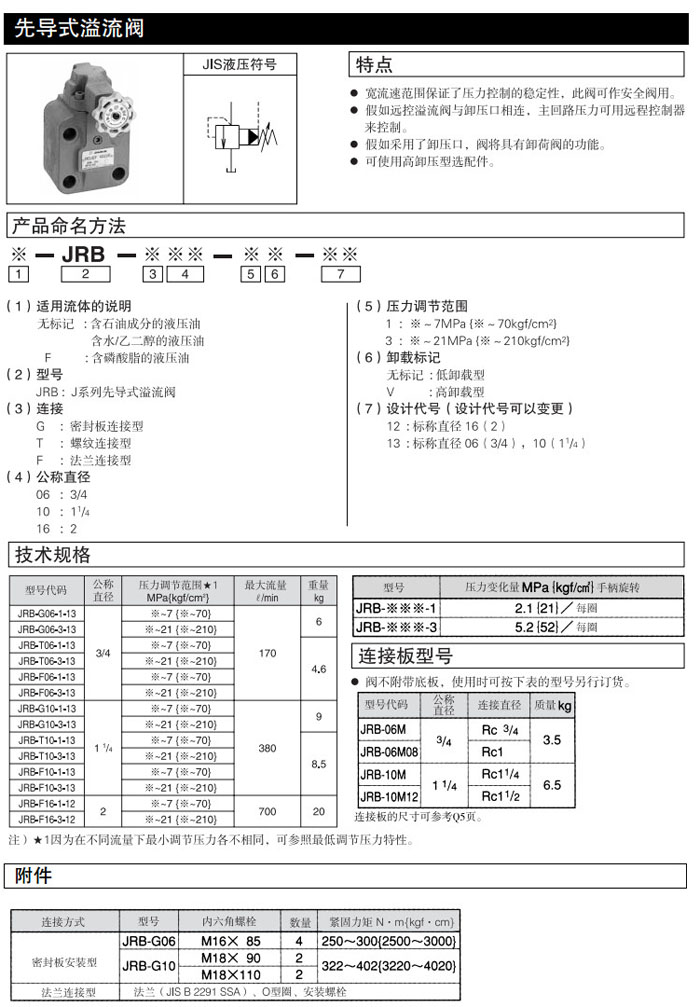 JRB-G06,JRB-T06,JRB-F06,JRB-G10,JRB-T10,JRB-F10,JRB-F16,JRB-G06-1-13,DAIKIN先導(dǎo)式溢流閥