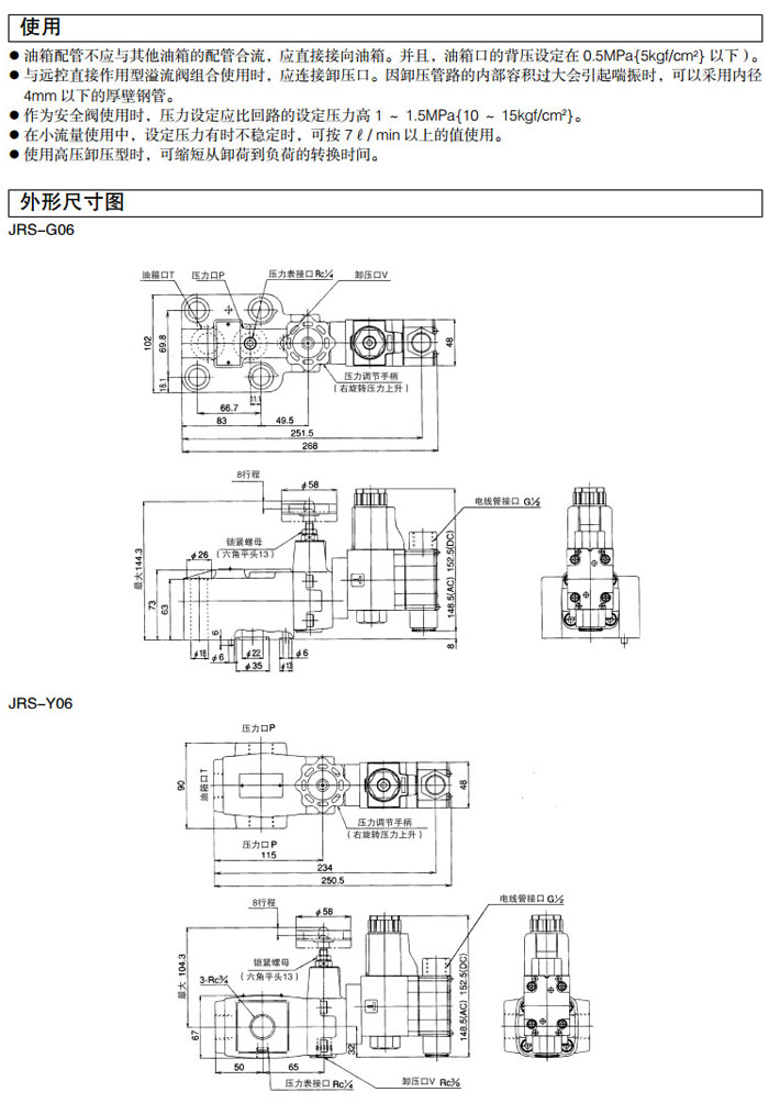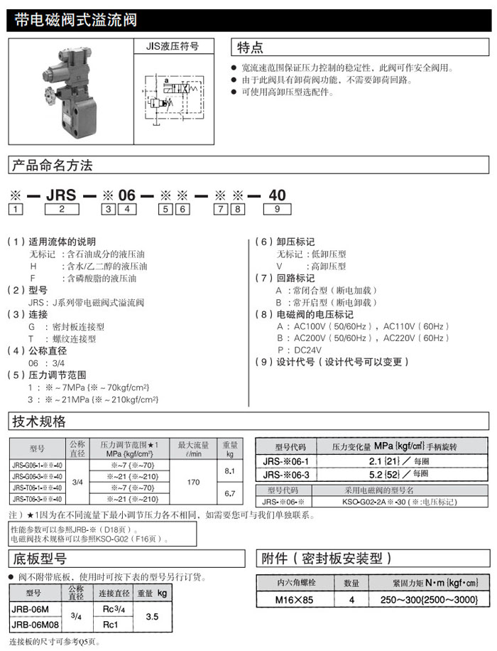 JRS-G06,JRS-T06,JRS-G06-1-AA-40,JRS-T06-1-AA-40,JRS-G06-3V-BP-40,JRS-T06-1V-BP-40,DAIKIN帶電磁閥式溢流閥