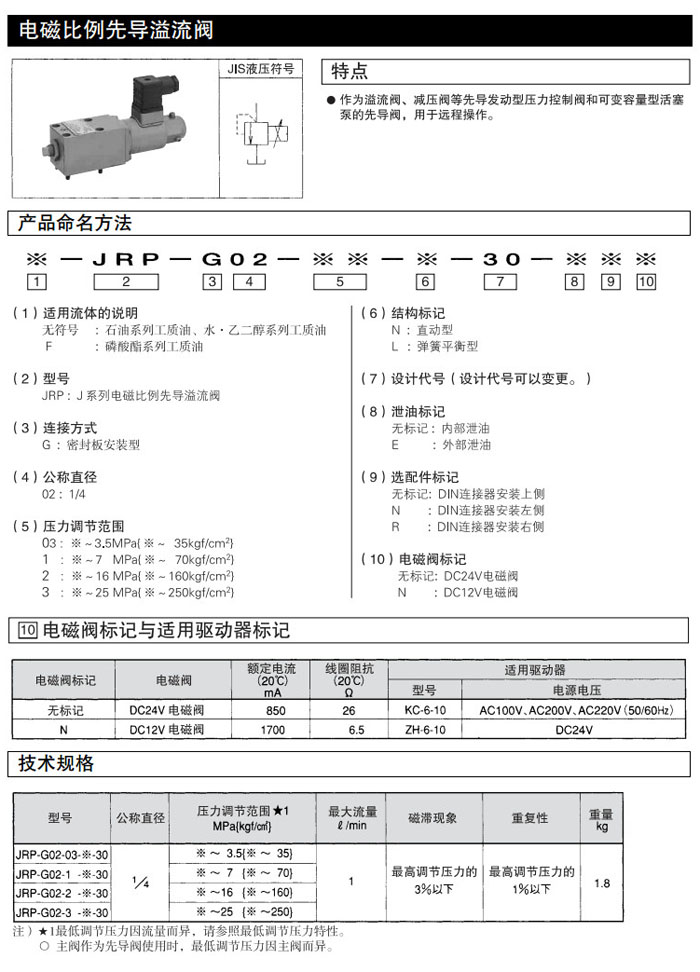 詳細(xì)信息 JRP-G02-03-N-30,JRP-G02-1-N-30,JRP-G02-2-L-30,JRP-G02-3-L-30,JRP-G02-2-N-30,DAIKIN電磁比例先導(dǎo)溢流閥