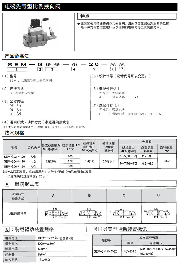 SEM-G03,SEM-G04,SEM-G06,SEM-G03-A-20,SEM-G04-A-20,SEM-G06-A-20,DAIKIN電磁先導(dǎo)型比例換向閥
