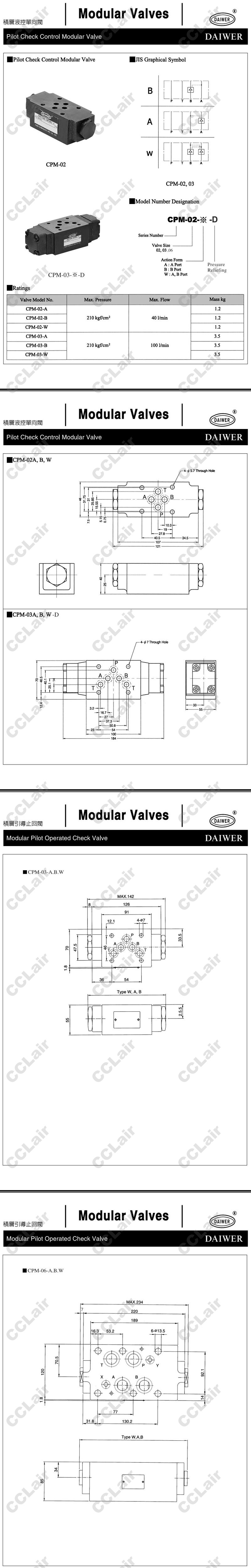 CPM-02-A,CPM-02-B,CPM-02-W,CPM-03-A,CPM-03-B,CPM-03-W,DAIWER積層液控單向閥