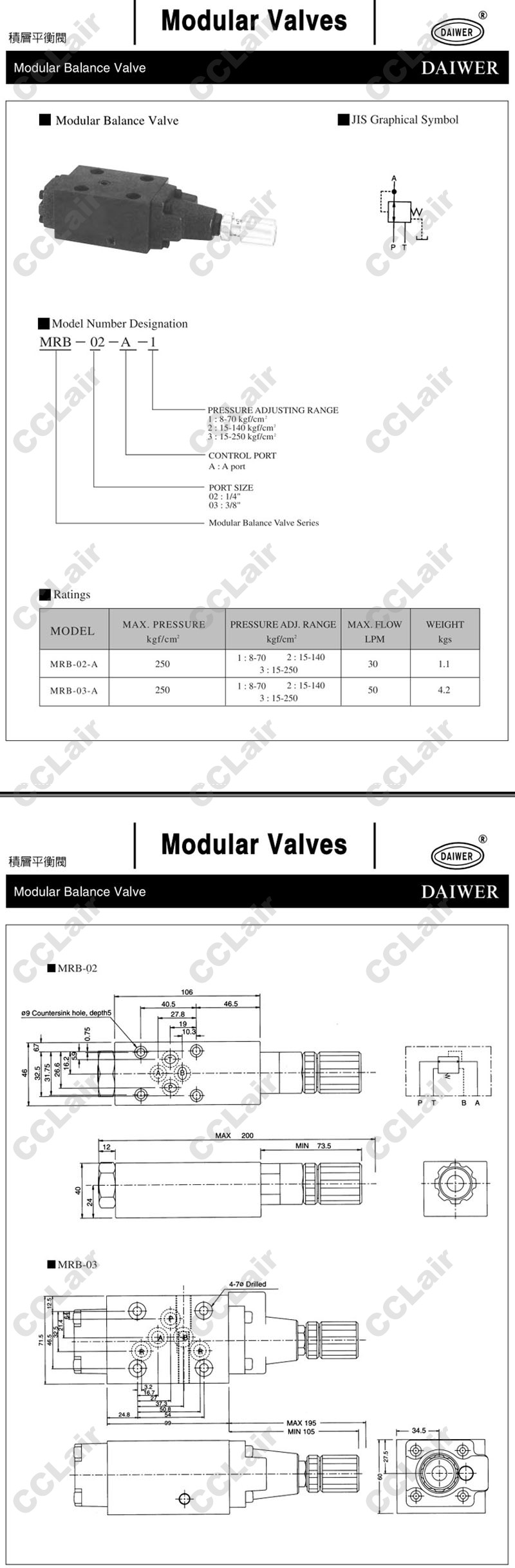 MRB-02-1,MRB-02-2,MRB-02-3,MRB-03-1,MRB-03-2,MRB-03-3,DAIWER積層平衡閥