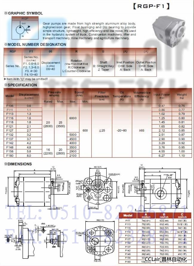 詳細(xì)信息 RGP-F127,RGP-F132,RGP-F137,RGP-F142,齒輪泵浦