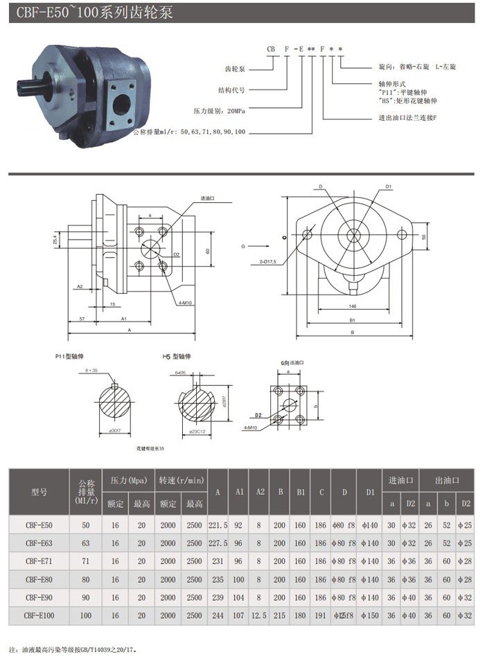CBF-E50,CBF-E63,CBF-E71,CBF-E80,CBF-E90,CBF-E100,CBF-E50FP11,CBF-E50FP11L,齒輪泵