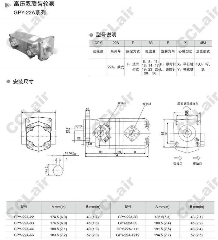 GPY-22A-22,GPY-22A-23,GPY-22A-44,GPY-22A-66,GPY-22A-88,GPY-22A-99,GPY-22A-1111,GPY-22A-1212,高壓雙聯(lián)齒輪泵,無(wú)錫昌林