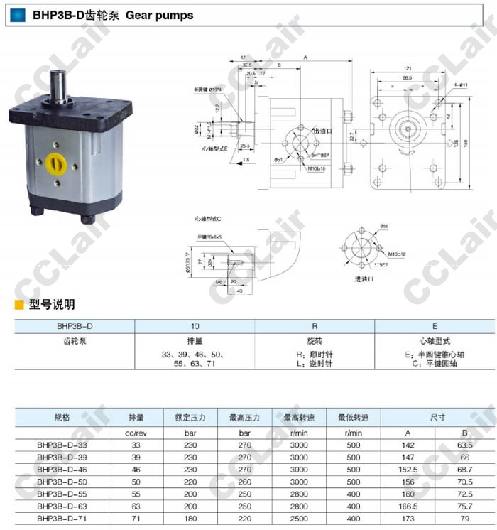BHP3B-D-33,BHP3B-D-39,BHP3B-D-46,BHP3B-D-50,BHP3B-D-55,BHP3B-D-63,BHP3B-D-71,齒輪泵