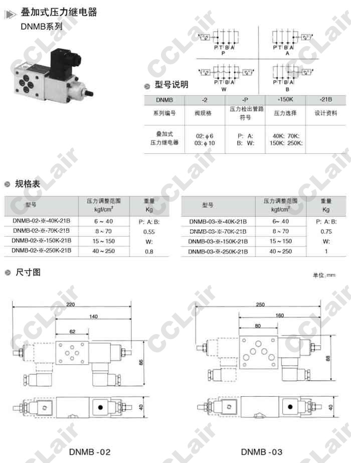 DNMB-02-P-40K-21B,DNMB-02-B-70K-21B,DNMB-02-P-150K-21B,DNMB-02-P-250K-21B,疊加式壓力繼電器
