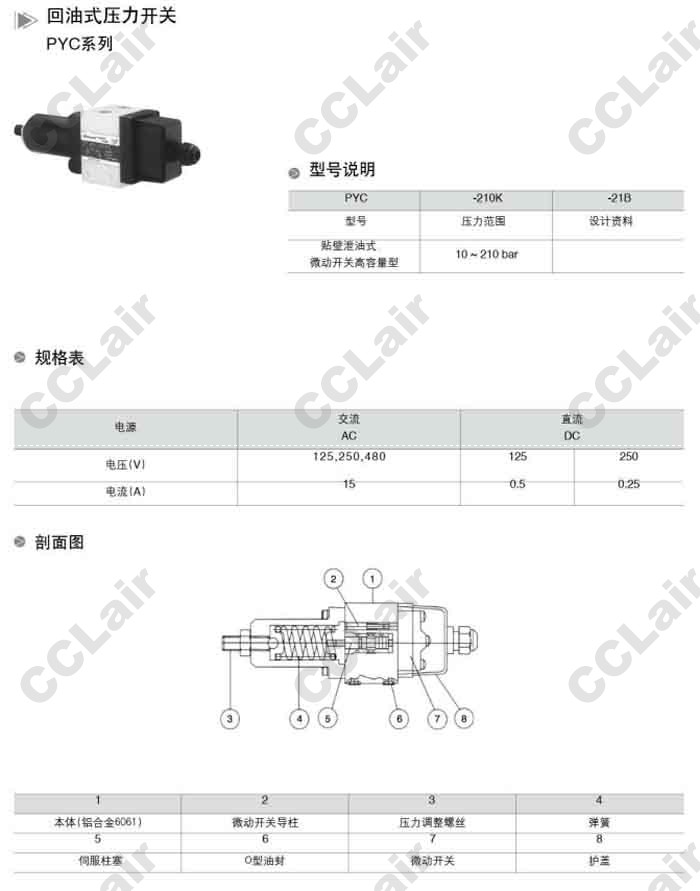 PYC-210K-21B,回油式壓力開(kāi)關(guān)