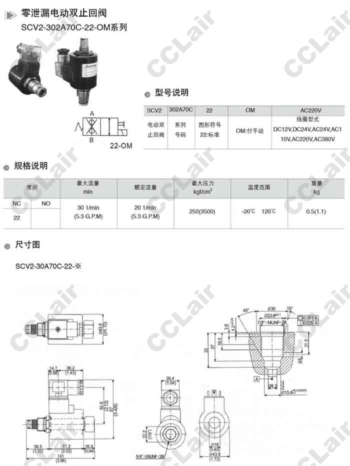 SCV2-302A70C-22-OM-AC110V,SCV2-302A70C-22-OM-AC220V,SCV2-302A70C-22-OM-AC380V,