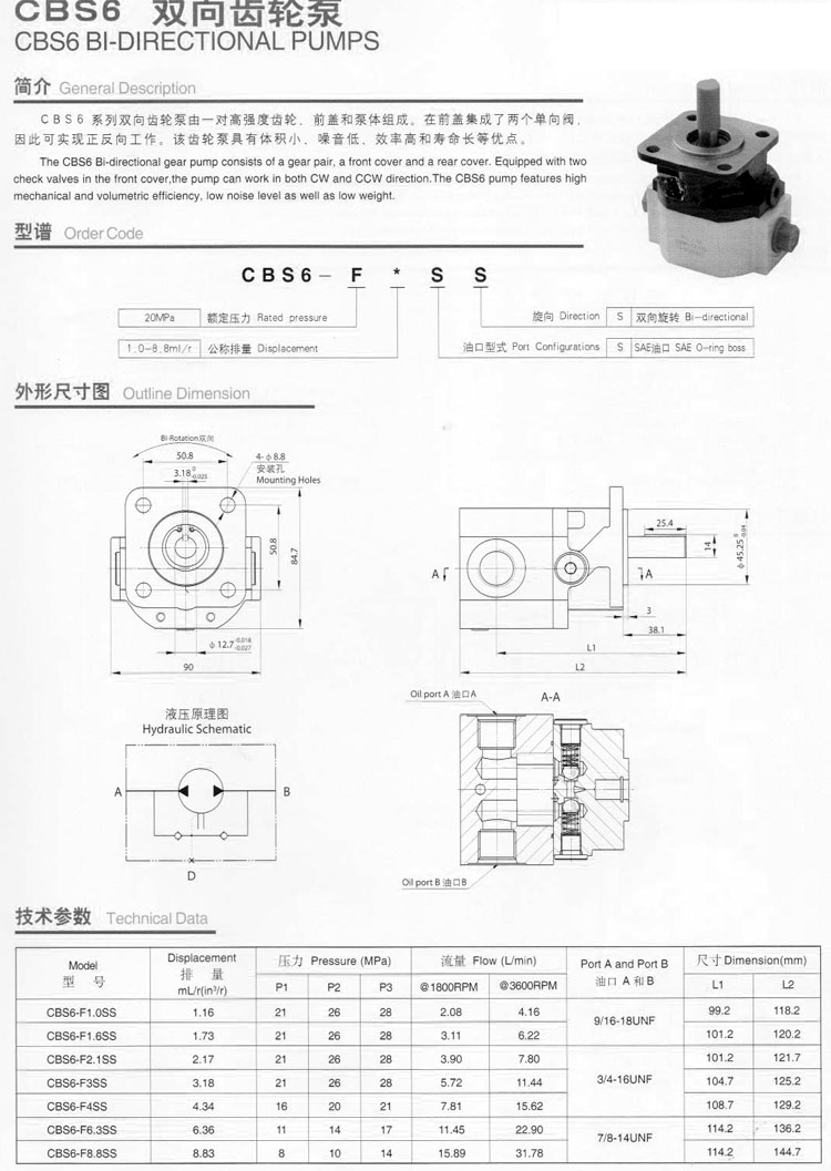 詳細信息 CBS6-F1.0SS,CBS6-F1.6SS,CBS6-F2.1SS,CBS6-F3SS,CBS6-F4SS,CBS6-F6.3SS,CBS6-F8.8SS,雙向齒輪泵
