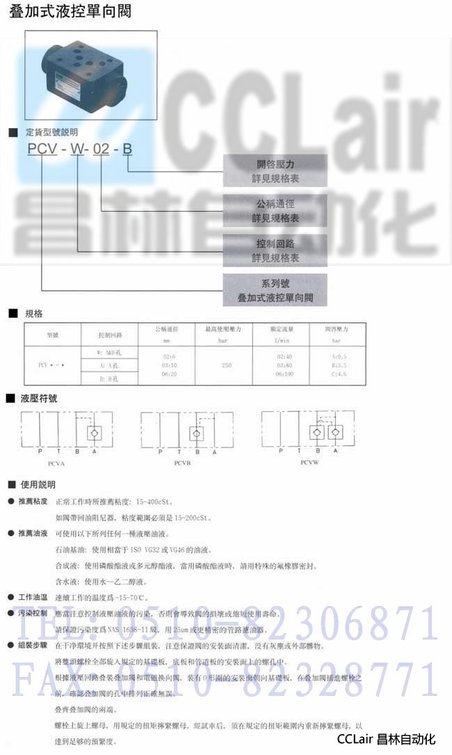 詳細信息 PCV-W-02-A,PCV-W-02-B,PCV-W-02-C,PCV-A-02-A,PCV-A-02-B,PCV-A-02-C,疊加式液控單向閥