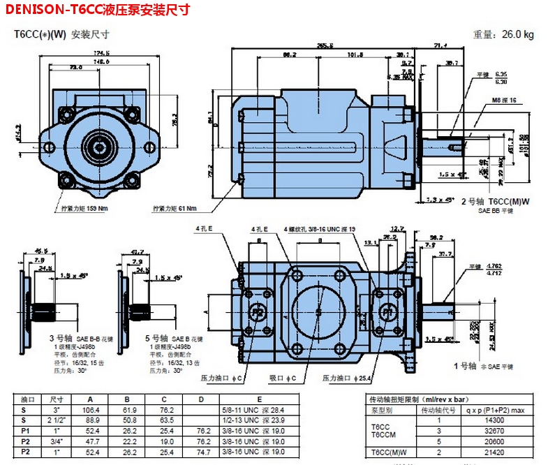 可供的雙聯(lián)泵規(guī)格組合有:CC, DC, DD, EC, ED和EE.