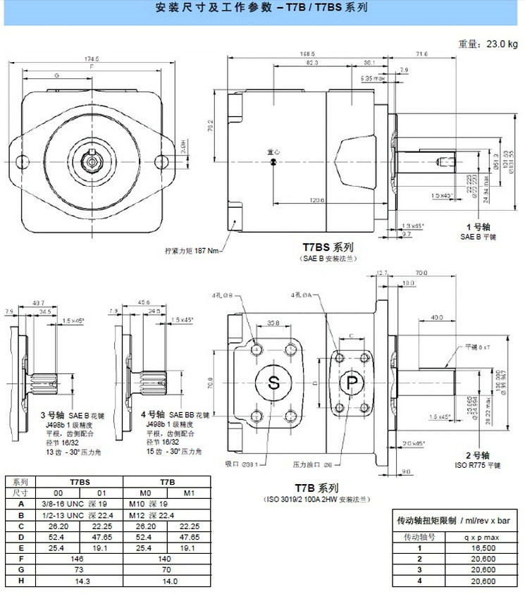 | T7 B系列一100 A2 HW ISO 3019-2 2螺栓安裝法蘭 | 泵芯規(guī)格 | 傳動(dòng)軸代號 |