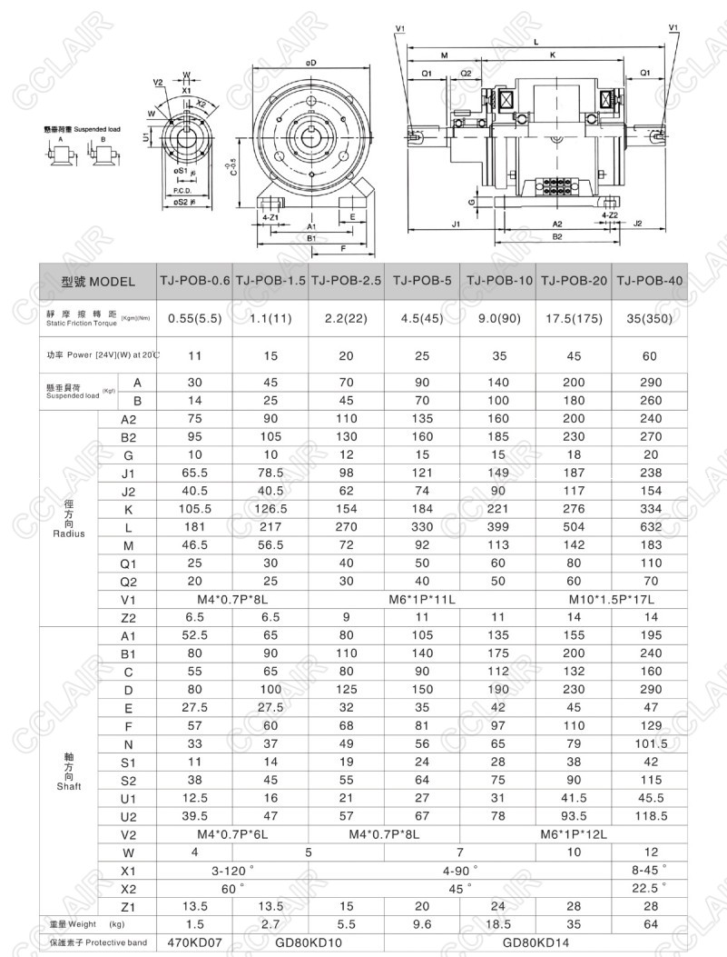 TJ-POB-0.6,TJ-POB-1.5,TJ-POB-2.5,TJ-POB-5,TJ-POB-10,TJ-POB,外露式電磁離合、剎車器組