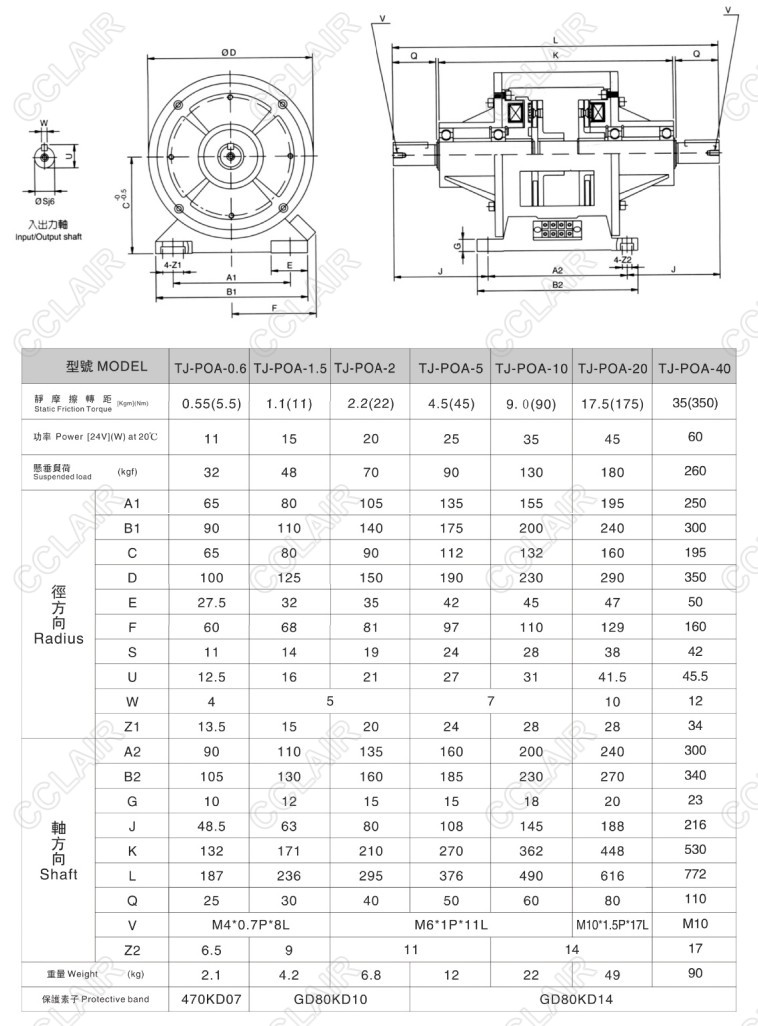 TJ-POA-0.6,TJ-POA-1.5,TJ-POA-2.5,TJ-POA-5,TJ-POA-10,TJ-POA,內(nèi)藏式電磁離合、剎車器組合