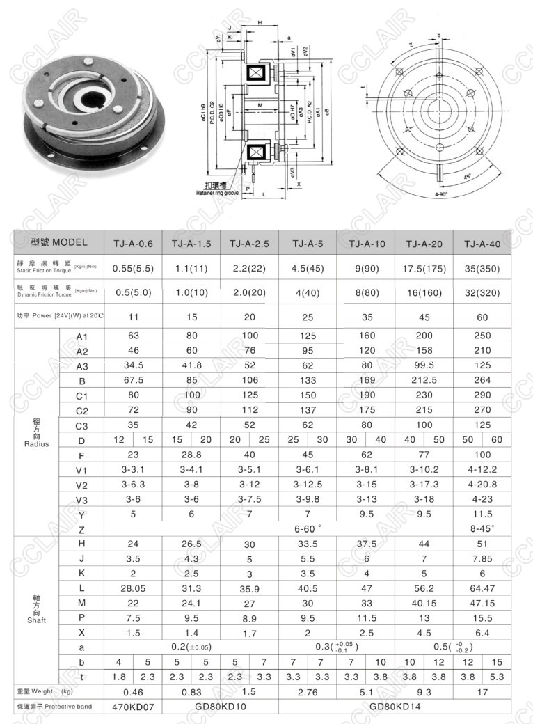 TJ-A-0.6,TJ-A-1.5,TJ-A-2.5,TJ-A-5,TJ-A-10,TJ-A-20,TJ-A-40,TJ-A,干式單板電磁離合器