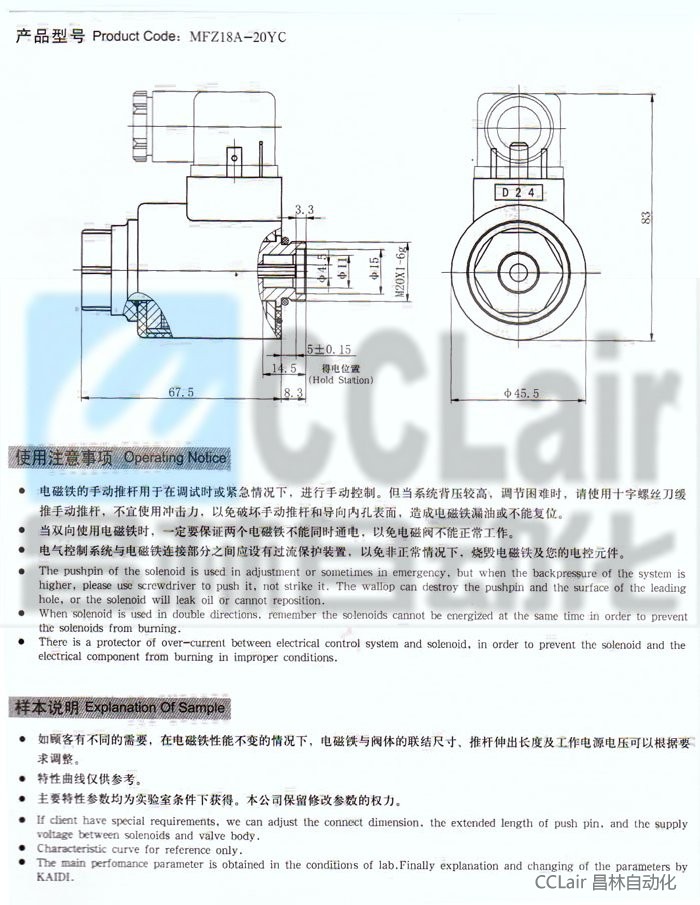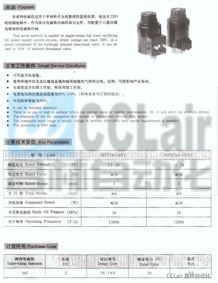 MFZ18-20YC,MFZ18A-20YC,MFZ18-30YC,直流濕式閥用電磁鐵