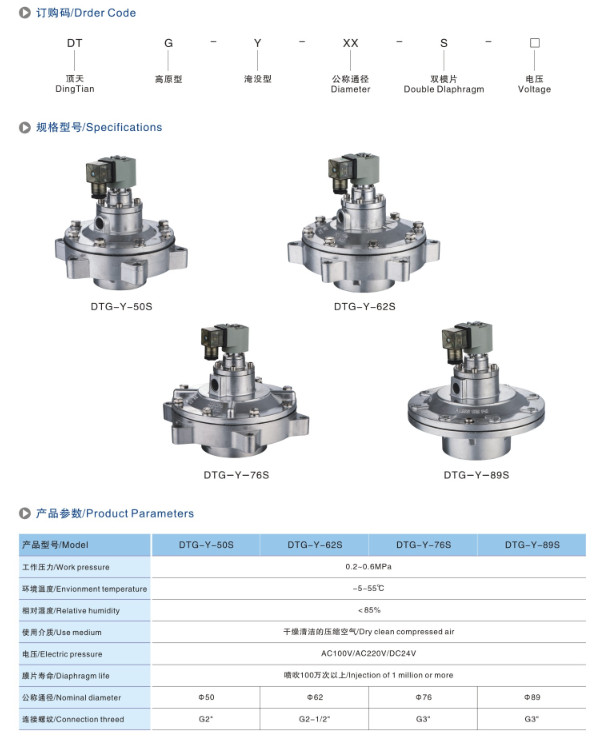 詳細(xì)信息 DTG-Y-50S,DTG-Y-62S,DTG-Y-76S,DTG-Y-89S,淹沒式脈沖閥 DTG-Y-50S,DTG-Y-62S,DTG-Y-76S,DTG-Y-89S