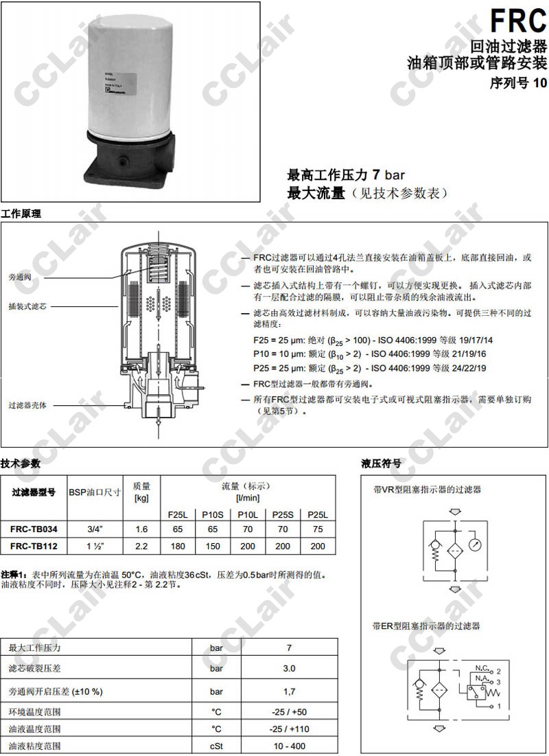 FRC-TB034-F25S/10N-B,FRC-TB112-F25L/10N-B,FRC-TB034-P10S/10V-B,FRC-TB112-P10L/10V-B,FRC-TB034-P25S/10N-B,回油過濾器