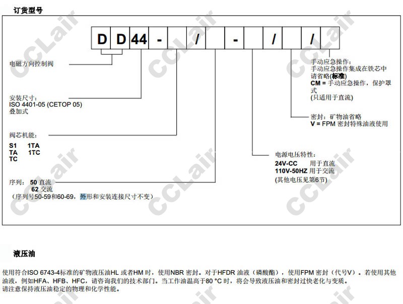 DD44-S1/50-24V-CC/V,DD44-TA/50-24V-CC/V/CM,DD44-TC/62-110V-50HZ/V,DD44-1TA/62-110V-50HZ,DD44-1TA/50-24V-CC,電磁方向控制閥