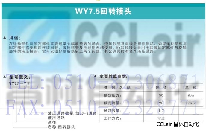 瀏覽次數(shù):666WY7.5-Y, 回轉(zhuǎn)接頭 |