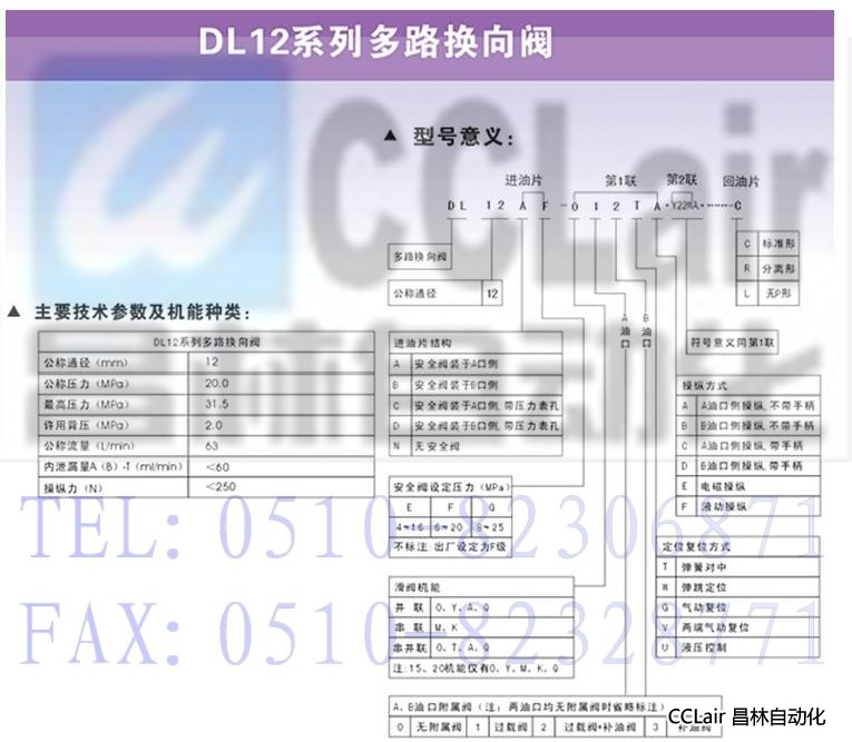 詳細信息 DL12,多路換向閥