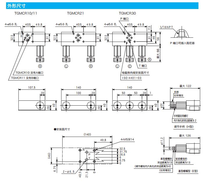 TGMCR10-3-AH-60,TGMCR10-3-AE-60,TGMCR10-3-BH-60,TGMCR10-3-BE-60,TGMCR疊加型遙控操作用溢流閥