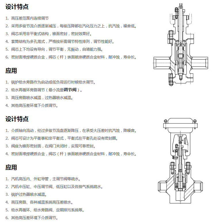 ZHD電子式電動(dòng)多級調(diào)節(jié)閥采用的是多級籠式套筒閥芯或軸流迷宮型閥芯,多級減壓,完全控制流過閥內(nèi)的介質(zhì)的流速,大幅度的降低了高壓氣體或者蒸汽在閥內(nèi)產(chǎn)生的噪音,穩(wěn)定的多級別降壓有效使液體不會(huì)產(chǎn)生氣蝕,是使用在高壓介質(zhì)場所性能穩(wěn)定的控制閥,可選擇多彈簧氣動(dòng)薄膜機(jī)構(gòu)或電動(dòng)執(zhí)行機(jī)構(gòu)等。