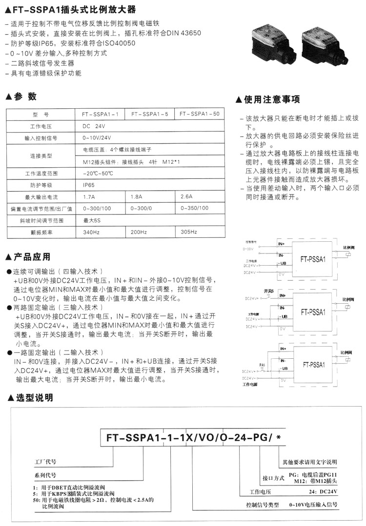 詳細(xì)信息 FT-SSPA1-1,FT-SSPA1-5,FT-SSPA1-50,插頭式比例放大器