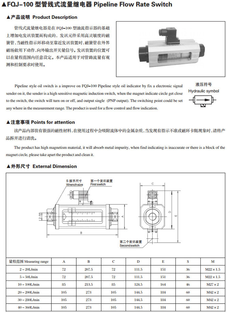 » FQJ-100,管線式流量繼電器