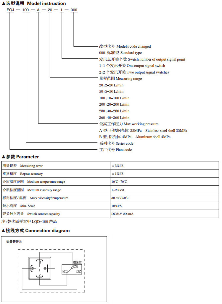 FQJ-100,管線式流量繼電器
