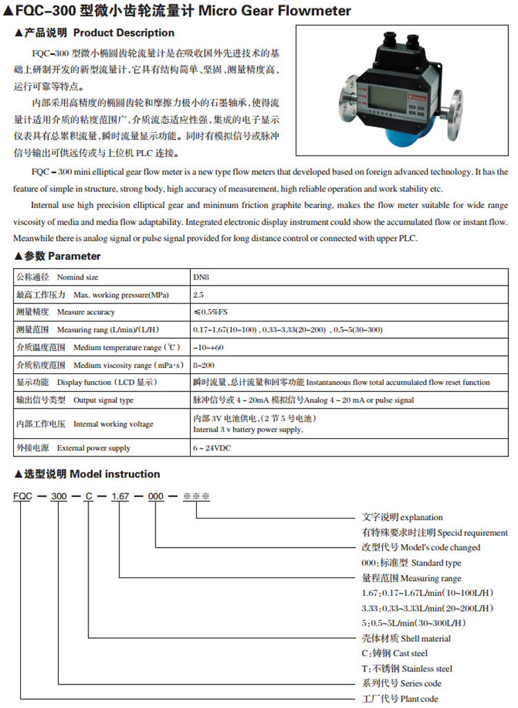 » FQC-300,微小齒輪流量計