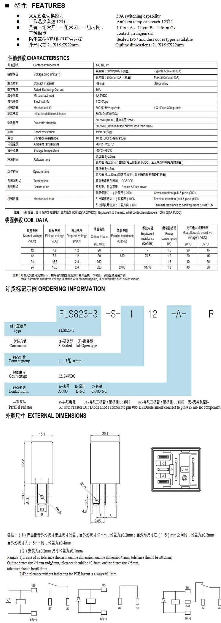 FLS823-3,汽車繼電器