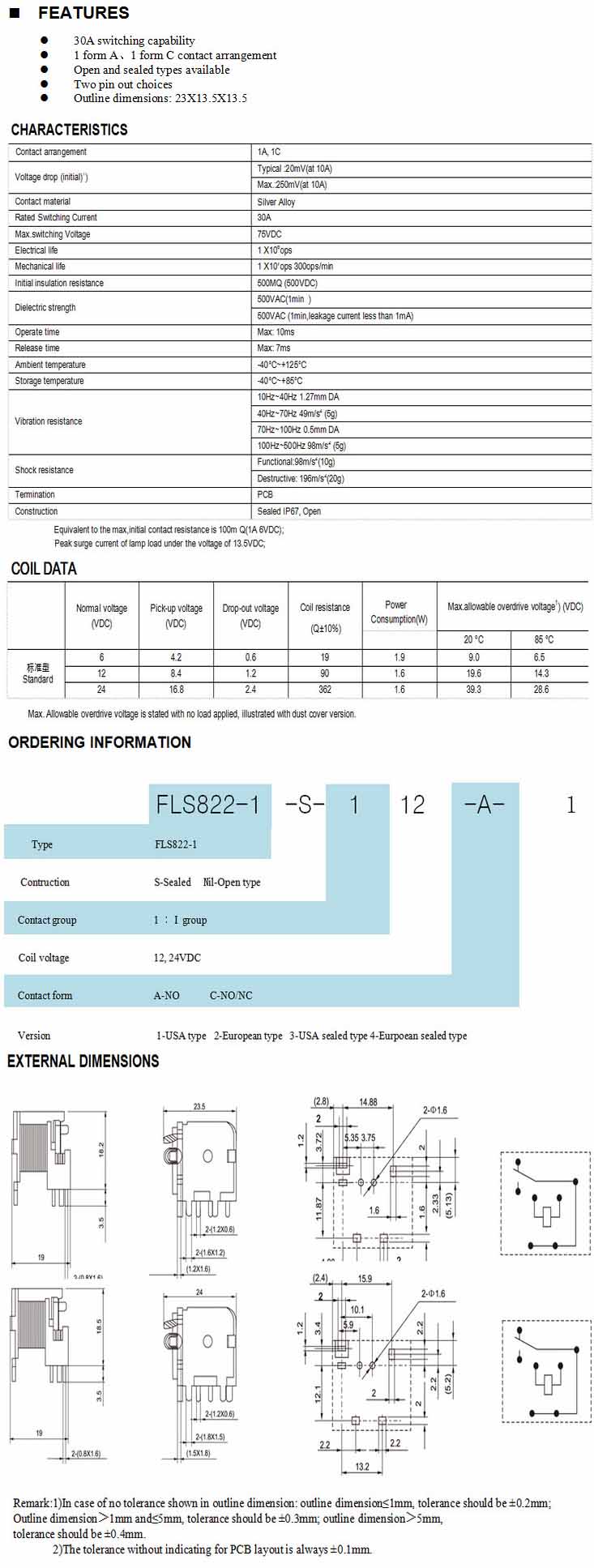 FLS822-1,汽車?yán)^電器