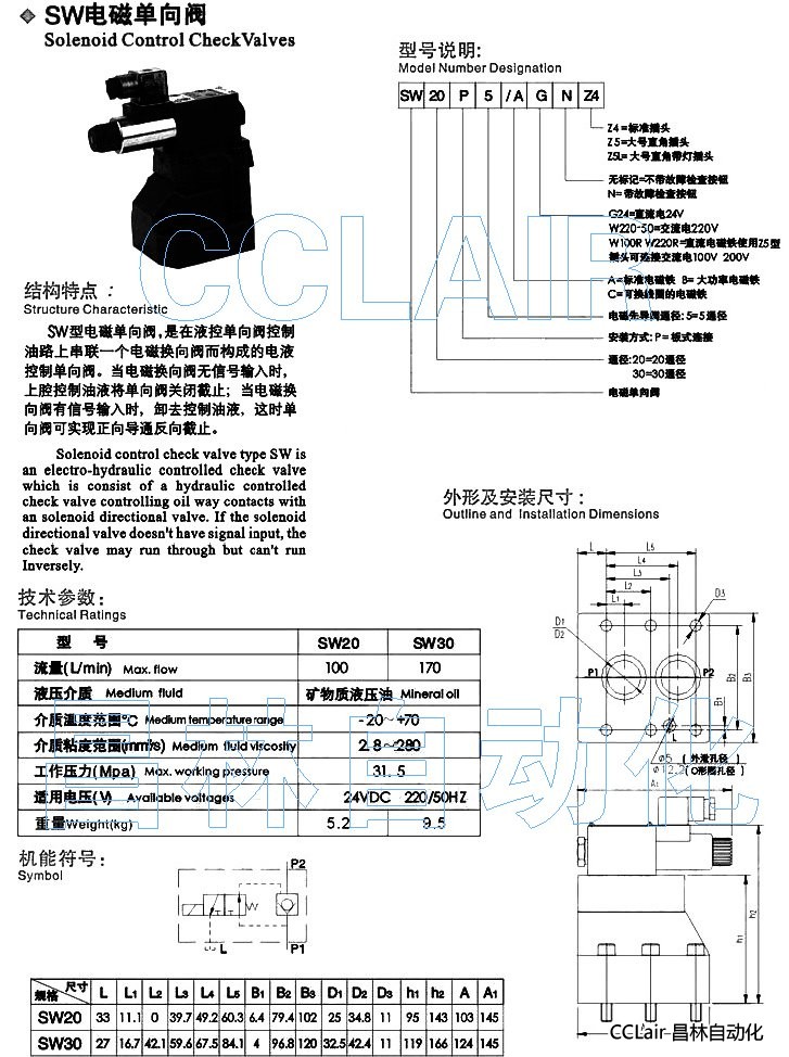 詳細信息 SW30P5/AW100RNZ5L,SW30P5/AW100RZ4,SW30P5/AW100RZ5,電磁單向閥