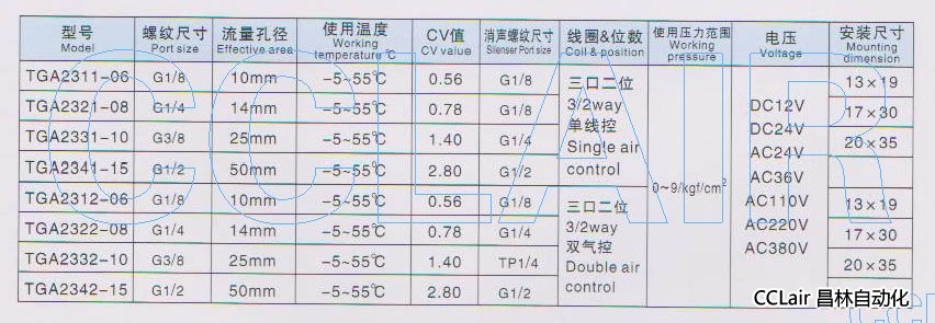 TGA2311-06,TGA2321-08,TGA2331-10,TG2341-15,氣控閥