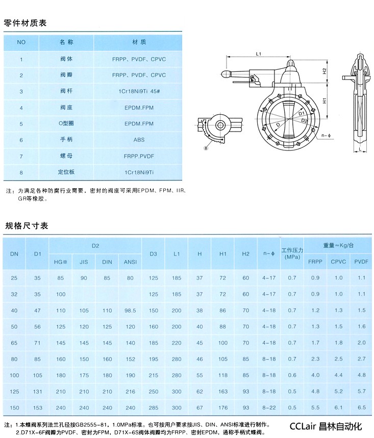 D71X-10F2 塑料PVDF蝶閥