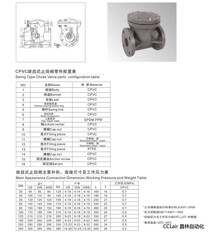 CPVC 氯化聚氯乙烯 溫度-40 °C~95 °C