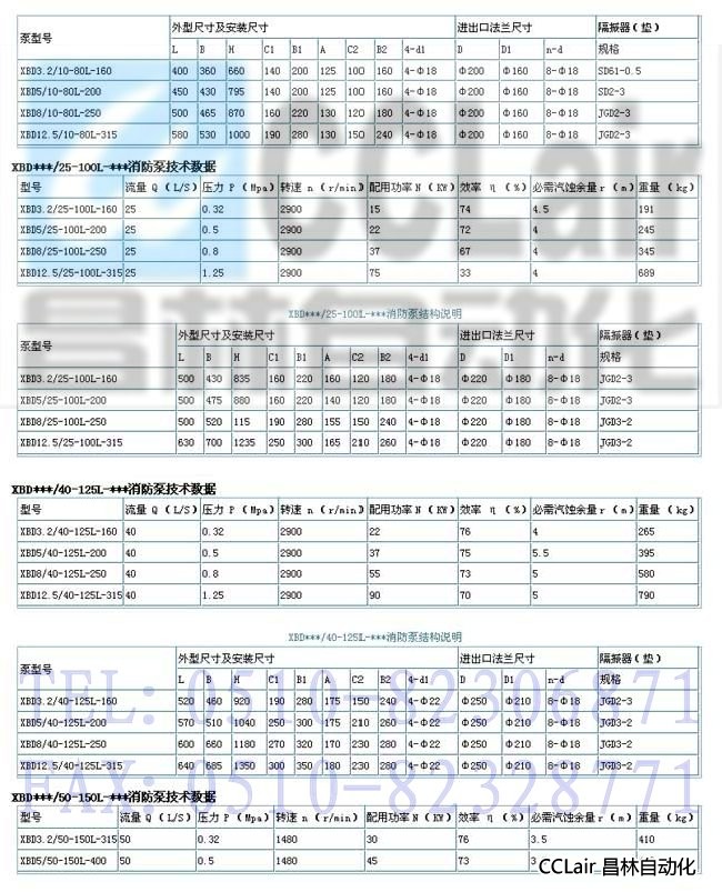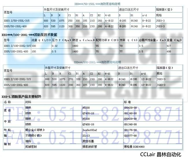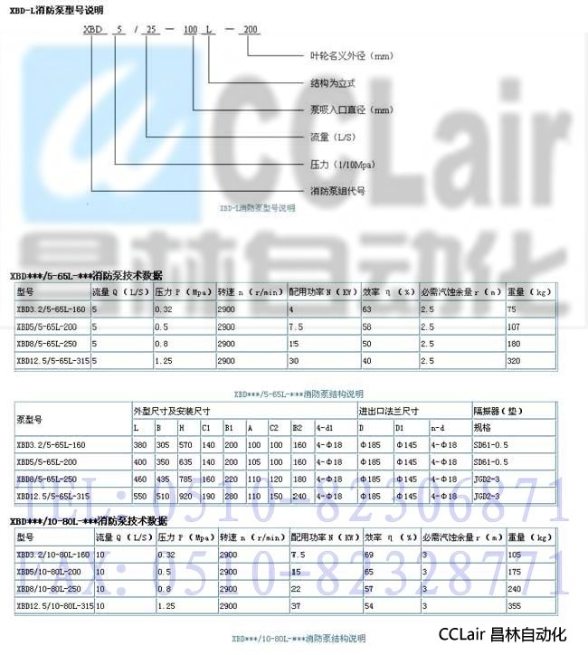XBD-L(W)型單級消防泵分單吸單級和單吸多級分段式二種,供輸送不含固體顆粒的清水及物理化學性質(zhì)類似于水的液體之用。主要用于消防系統(tǒng)增壓送水,也可應用于廠礦給排水。輸送液體的流量范圍為5~80L/s,壓力范圍為0.2~2.25MPa,配套功率范圍為1.5~200kW,口徑范圍為φ50~φ250mm。