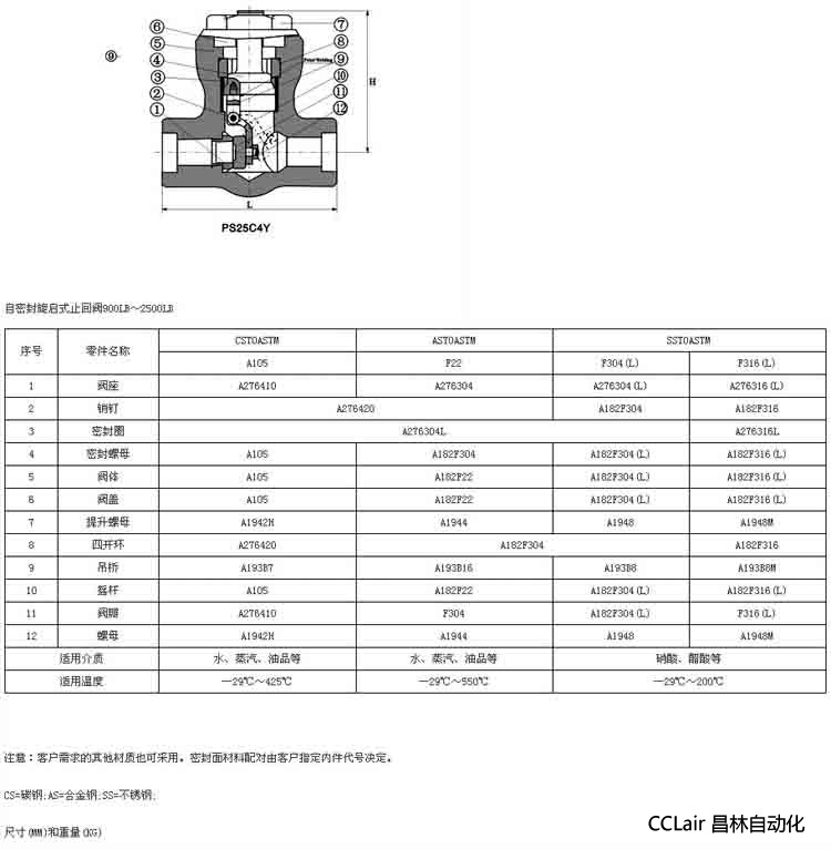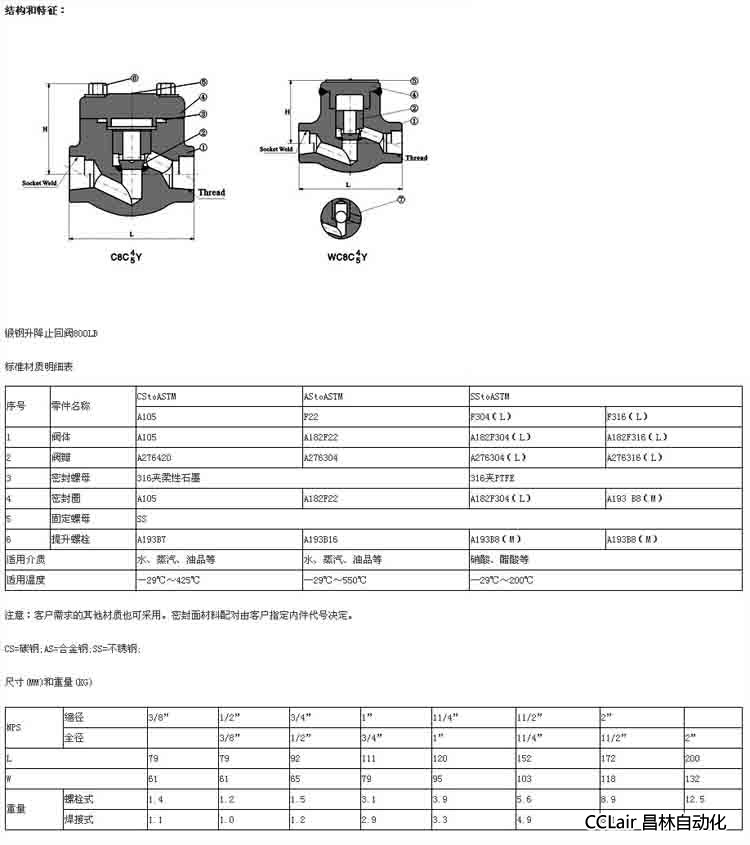 H61H-16C,H61H-25C,H61H-32C,H61H-40C,H61H-64C,鍛鋼止回閥