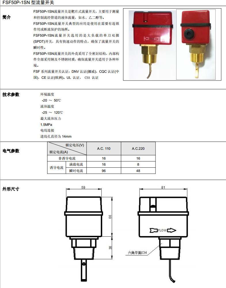 詳細(xì)信息 FSF50P-1SN,流量開關(guān)