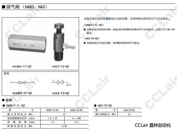詳細(xì)信息 HAB3-T1-02,HA3-T2-02, 排氣閥