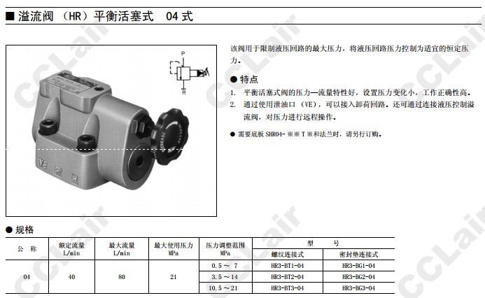 HR3-BT1-04,HR3-BT2-04,HR3-BT3-04,HR3-BG1-04,HR3-BG2-04,HR3-BG3-04,平衡活塞式溢流閥