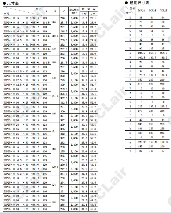 TCP34-L25-40-MR1,TCP34-L25-50-MR1,