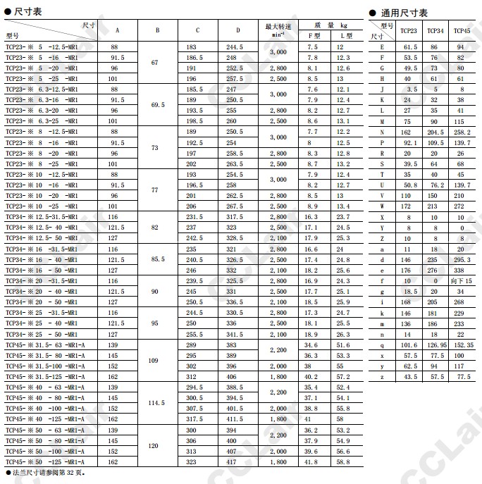 TCP34-L16-31.5-MR1,TCP34-L16-40-MR1,TCP34-L16-50-MR1,