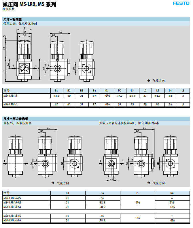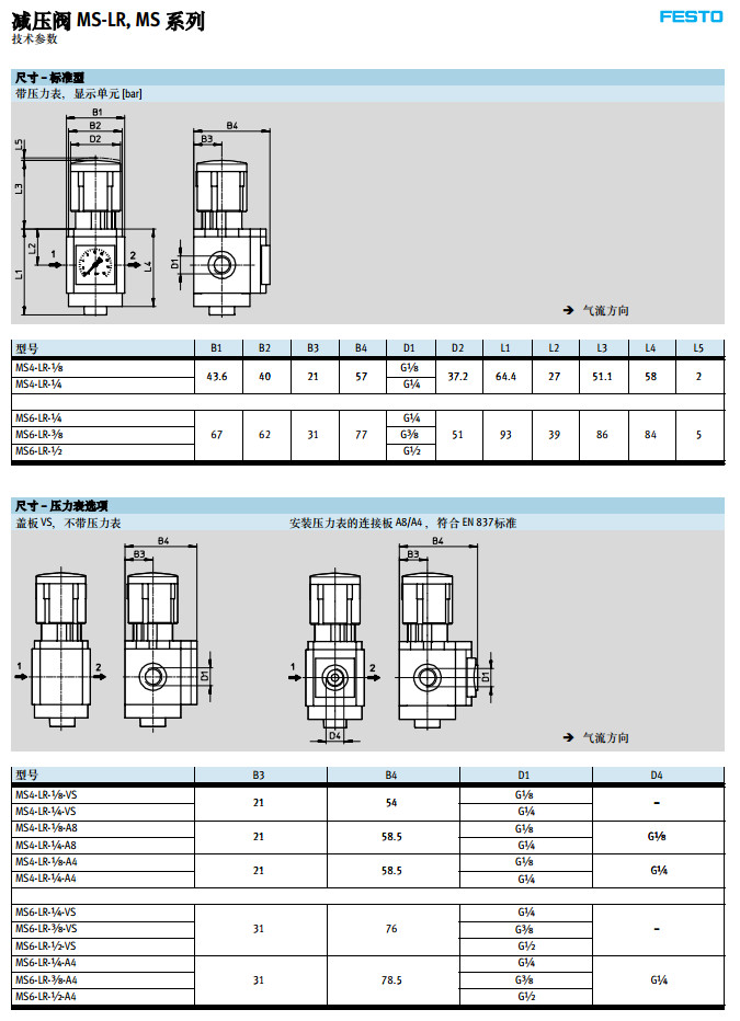 MS4-LR-1/8,MS4-LRB-3/8,MS6-LR-3/8,MS6-LRB-1/8,festo減壓閥