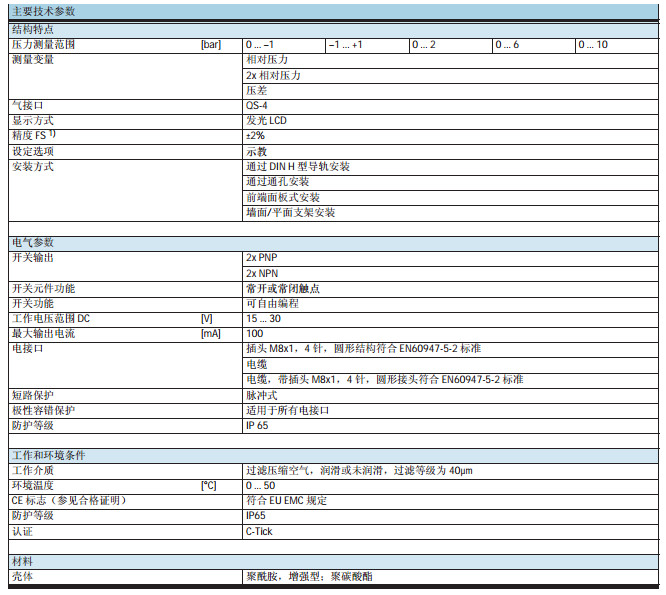 型號(hào): SDE3-V1S,SDE3-B2S,SDE3-D2D,SDE3-D6Z,SDE3-D10Z,festo壓阻式傳感器
