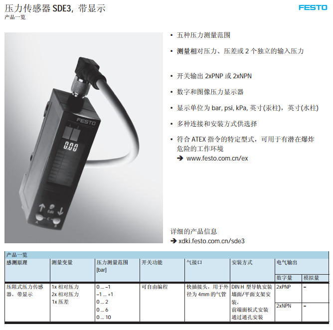 產(chǎn)品: 瀏覽次數(shù):1008SDE3-V1S,SDE3-B2S,SDE3-D2D,SDE3-D6Z,SDE3-D10Z,festo壓阻式傳感器